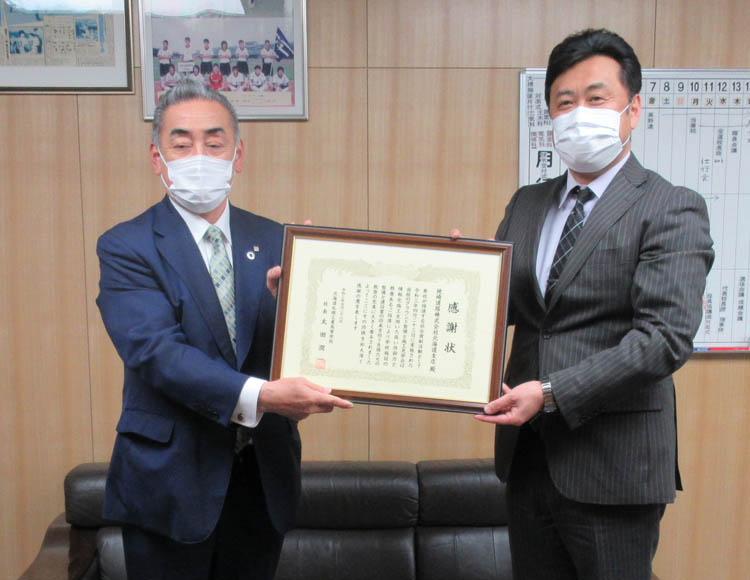 2021年5月26日、弊社が2015年度から継続して行っている加須事業所管内の道路保全工事において、5年以上無事故を達成したとして表彰状、また2年連続して優秀な成績を修めたとして感謝状を㈱ネクスコ・メンテナンス関東よりいただきました。