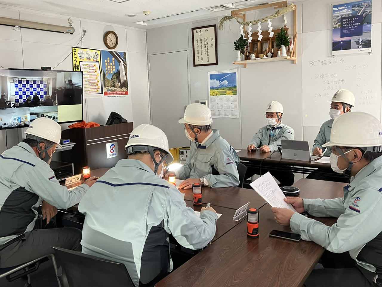 当社では、2023年3月30日(木)、事業継続計画(BCP)に基づく総合防災訓練を実施しました。午前9時20分に和歌山県沖を震源とする大地震が発生し、本社及び名古屋支店が被災し停電したと想定、本社に災害対策本部を設置し、停電した本社及び名古屋支店では非常用バッテリーでTV会議システムを起動して北海道支店、千歳営業所、恵庭総合技術センター、西日本支店を中継した。